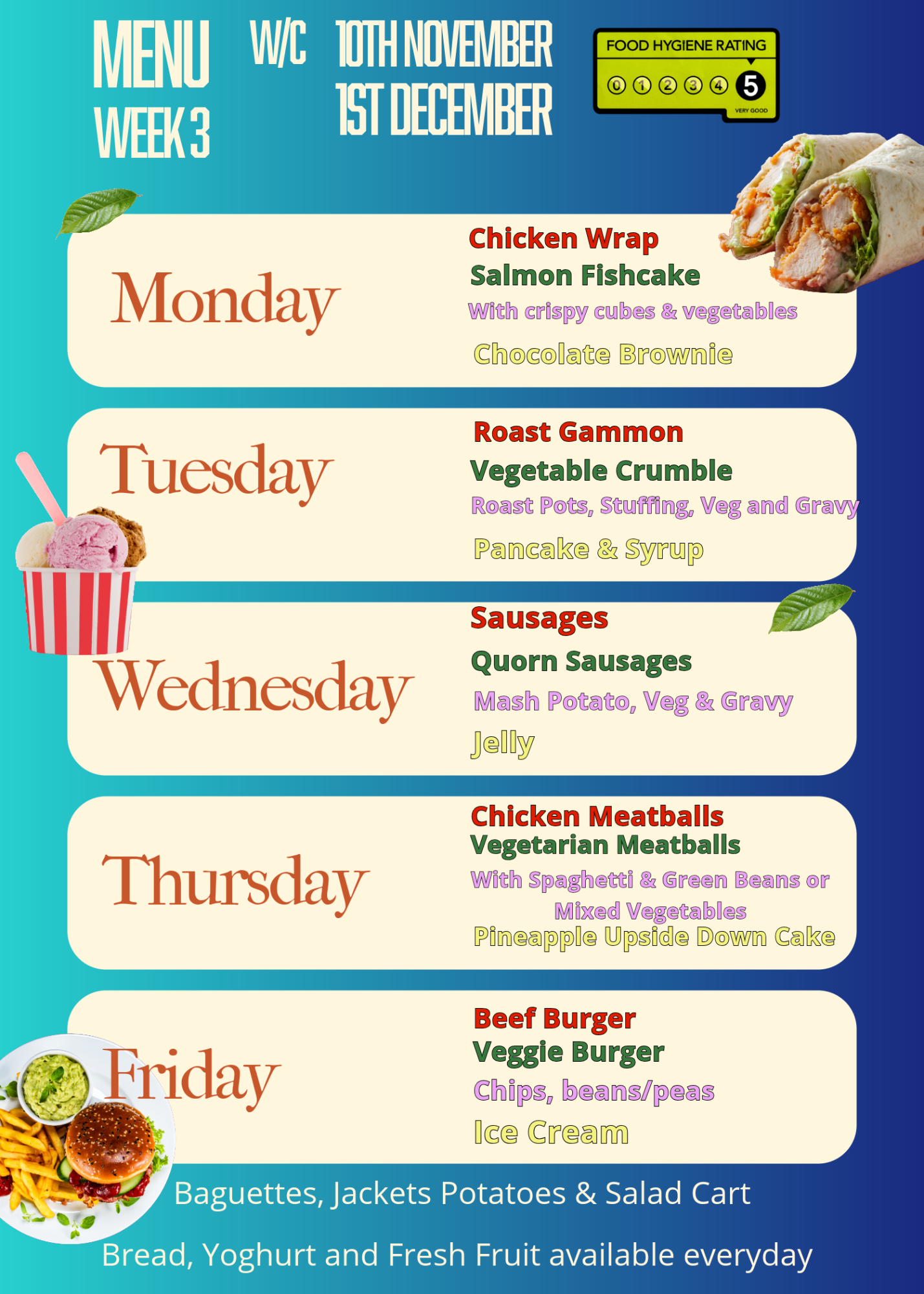 School Dinner Gluten/Dairy Free menu alternatives are as above but Gluten/Dairy free